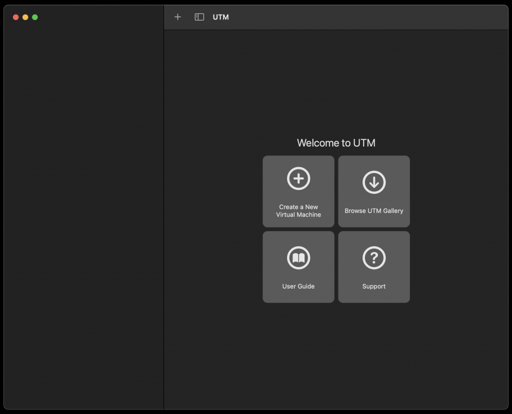 With UTM open, you’re going to want to click on ‘Create a New Virtual Machine’: