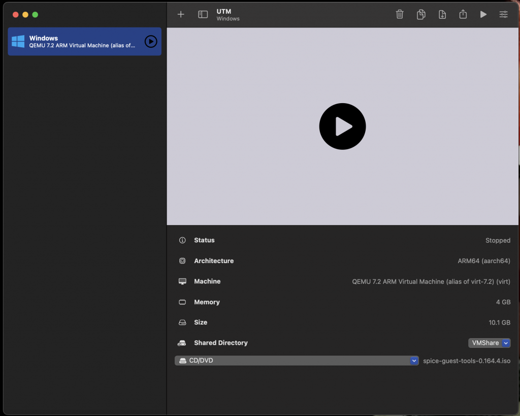 Then optionally configure a share between your host (MacOS) and guest (Windows 11). I recommend this as how else are you going to easily screw up your line endings while working in Git repos?:
