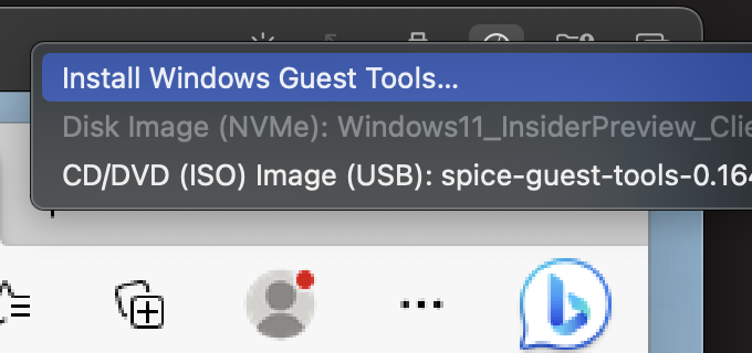 Then select ‘Install Windows Guest Tools…’: