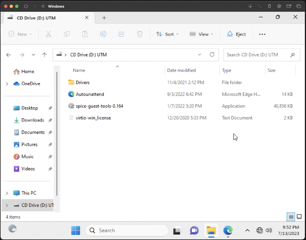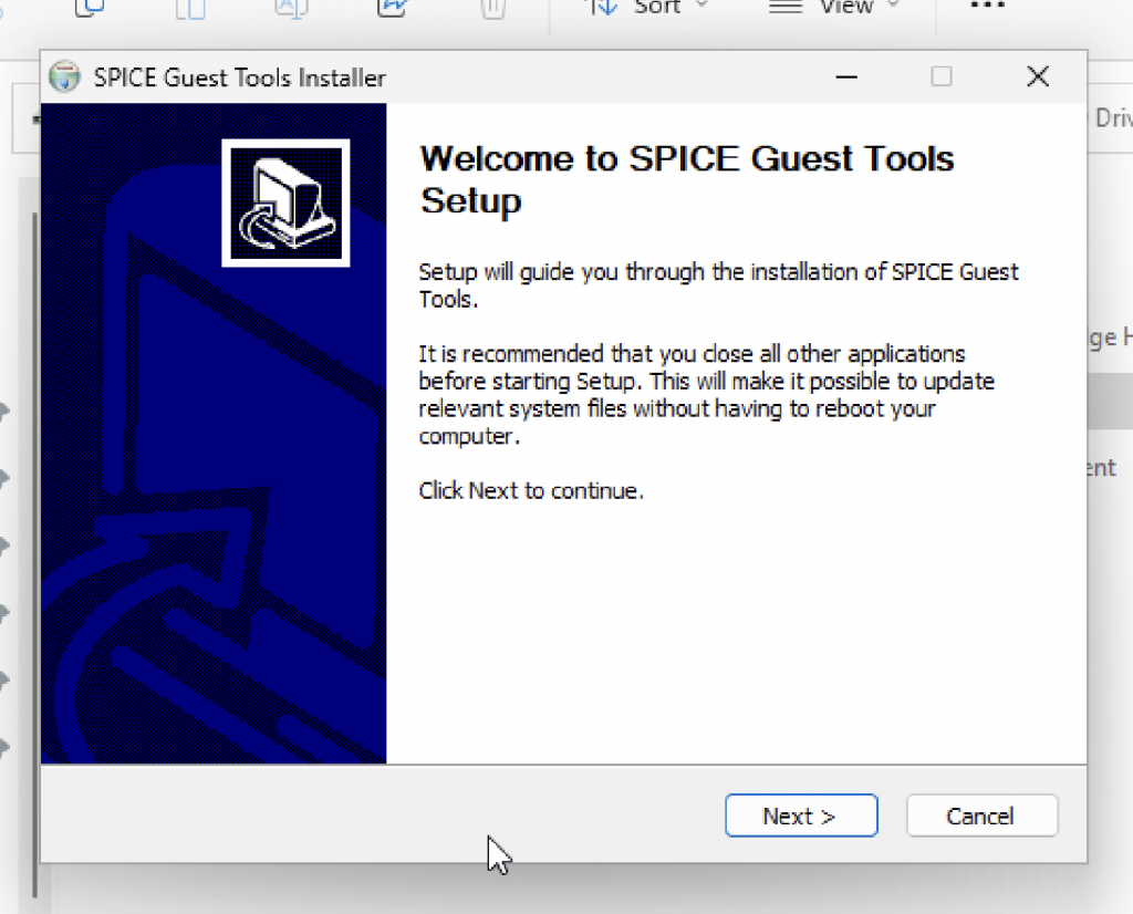 Next you will want to access the mounted disk, which is mounted as a virtual CD/DVD drive: - run ‘spice-guest-tools-…’ by double clicking it: