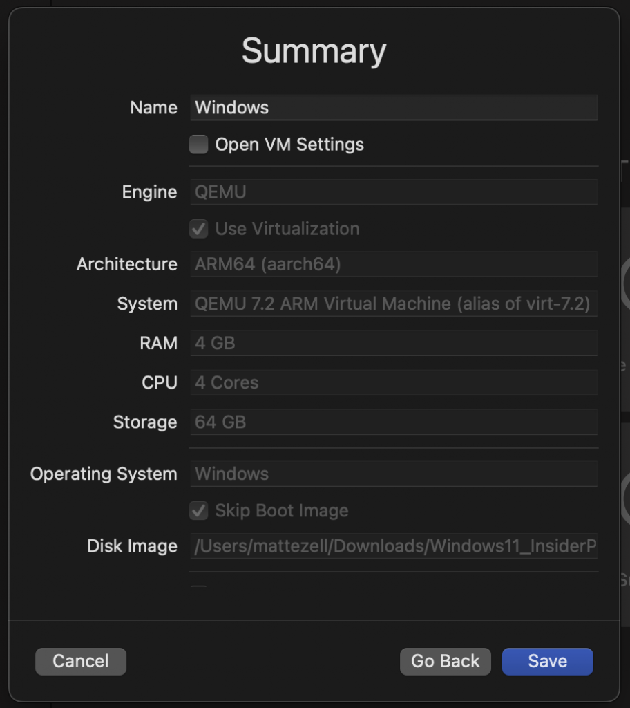 Up next, you’re going to need a Windows 11 image to run, right? Here, we’re going to use the Windows Insider Preview (which requires an Insiders account - so get to registering in the likely event that your Apple Fangirl/Fanboy butt doesn’t already have one) - https://www.microsoft.com/en-us/software-download/windowsinsiderpreviewARM64