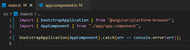 Since we no longer have this environment.ts file out of the box with new apps, it seems logical to assume we can skip some steps - basically, we just need to ensure we bootstrap our now-standalone AppComponent.