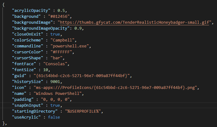Something that’s worth noting, and something I don’t yet fully understand - ‘useAcrylic’ in relation to using ‘backgroundImage’. In my experiences thus far, I must set useAcrylic to false in order to set a background image and have it actually load - when set to true, my CLI instance seems to fall back to simple color configurations (with Acrylic’s glassy transparency goodness, of course).