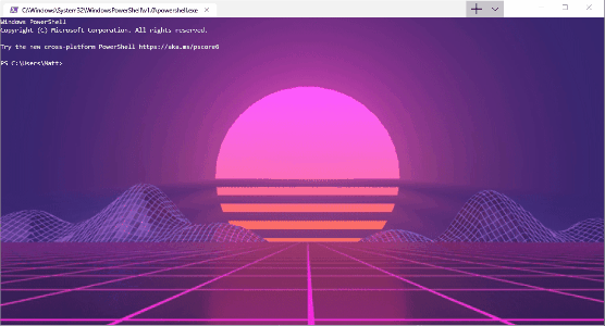 Another setting of interest is ‘backgroundImageOpacity’, which (hold on to your seats!) allows you to set the opacity of the CLI instance’s background. Here’s my PowerShell configuration rocking the synthwave: