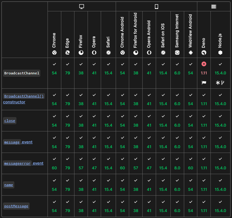 After consulting the ever-valuable MDN Web Docs on the topic, I had a BroadcastChannel spun up in a matter of seconds - here’s the overview and demonstration of it in action.